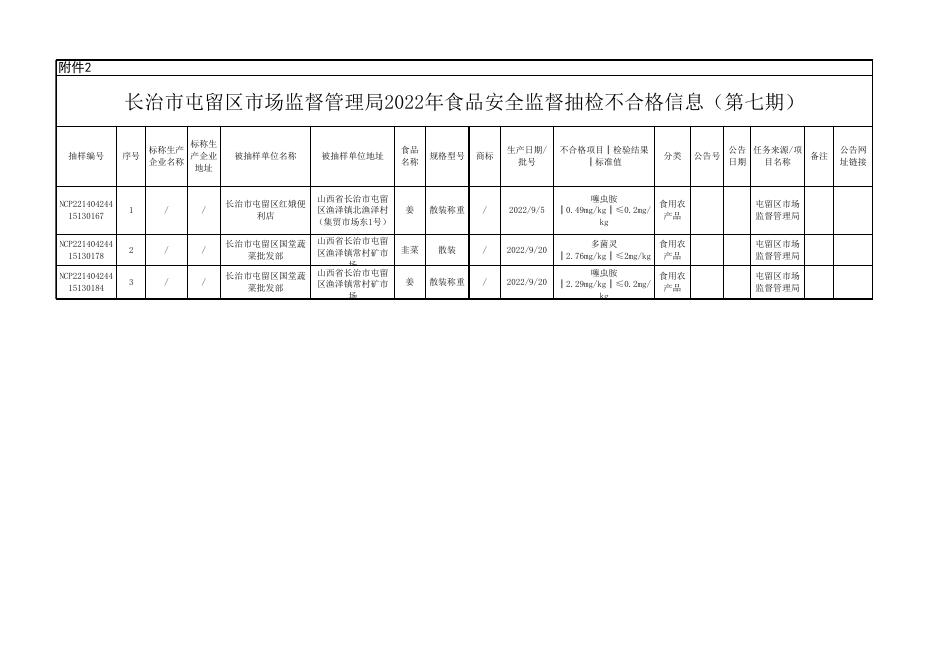 2022年第七 期屯留区食品监督抽检产品不合格信息.xls