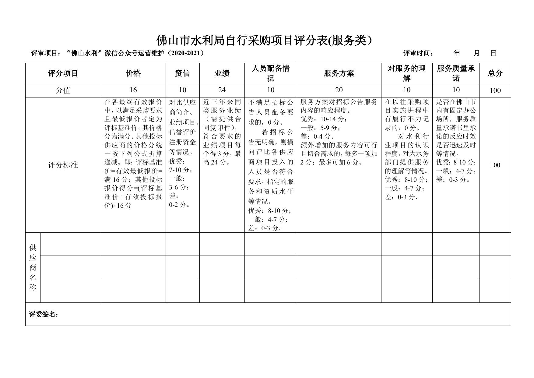 附件2-佛山市水利局自行采购项目评分表(服务类).doc