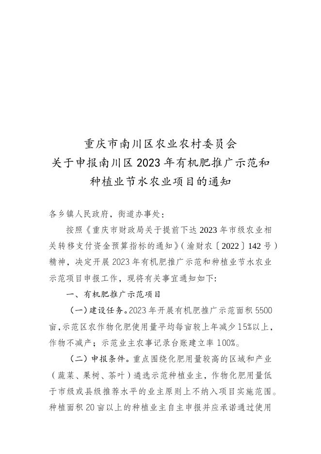 南川区2023年有机肥推广示范和种植业节水农业示范项目申报通知0207.docx