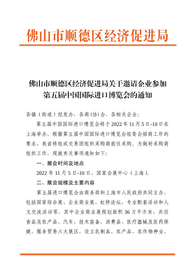 佛山市顺德区经济促进局关于邀请企业参加第五届中国国际进口博览会的通知.pdf