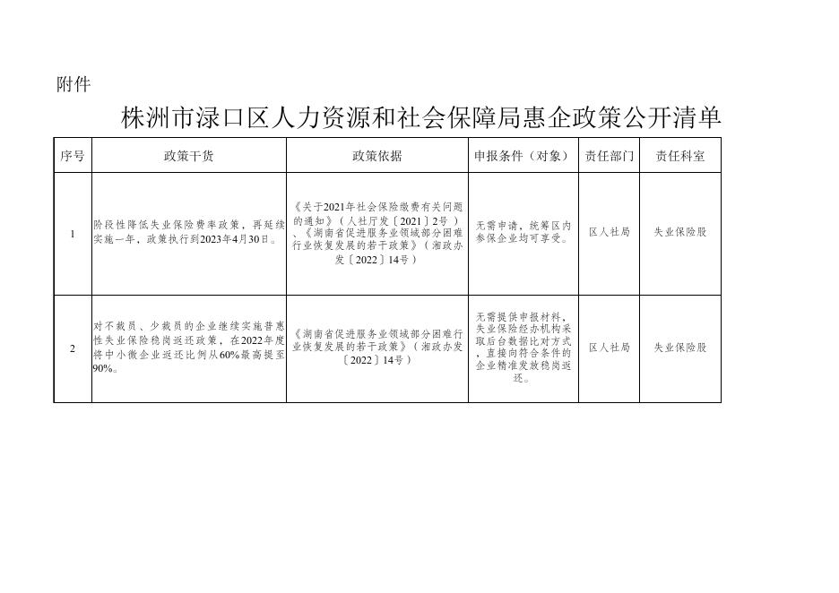 株洲市渌口区人力资源和社会保障局惠企政策公开清单.xlsx