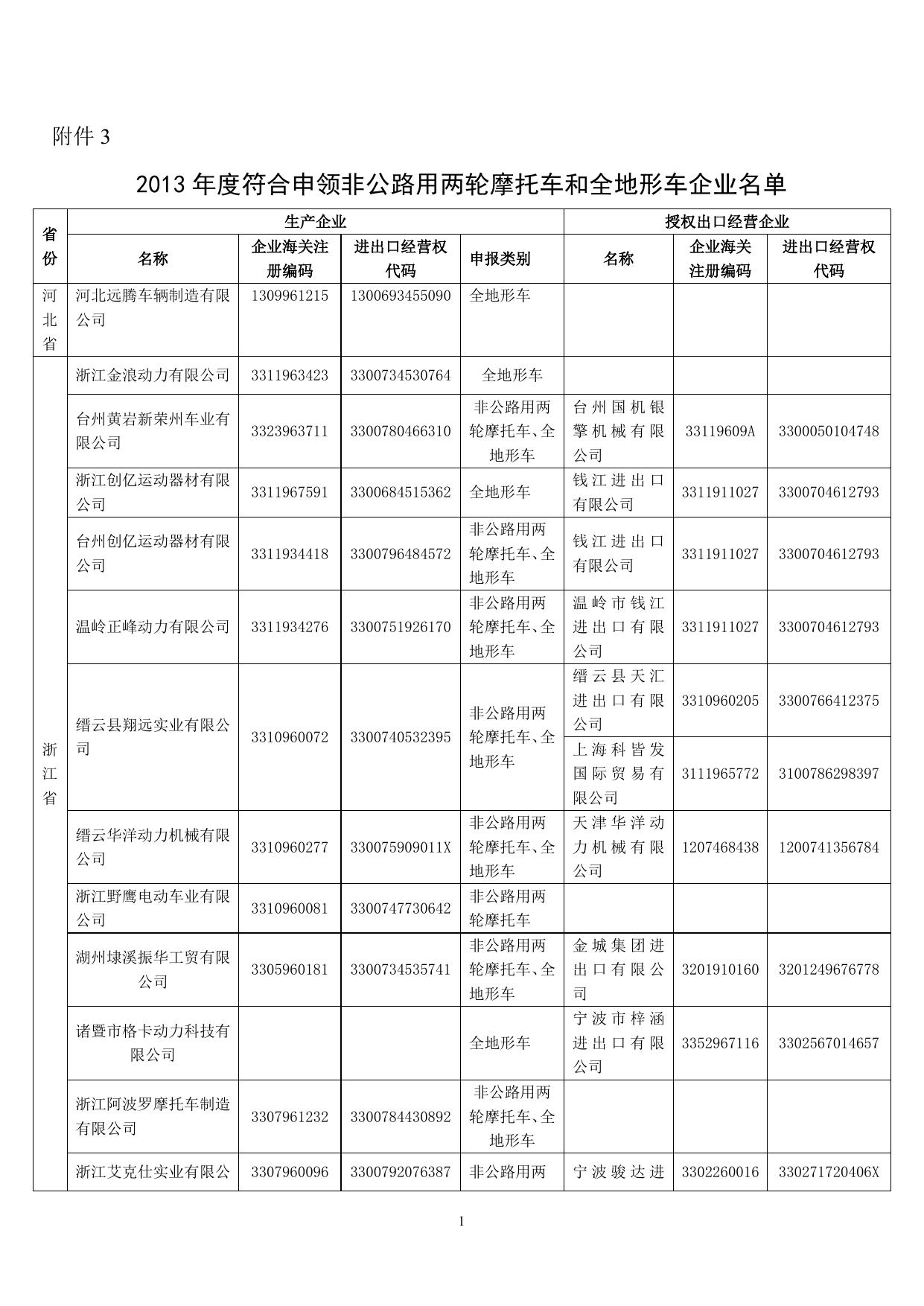 3---2013年度符合申领非公路用两轮摩托车和全地形车企业名单(公示版).doc