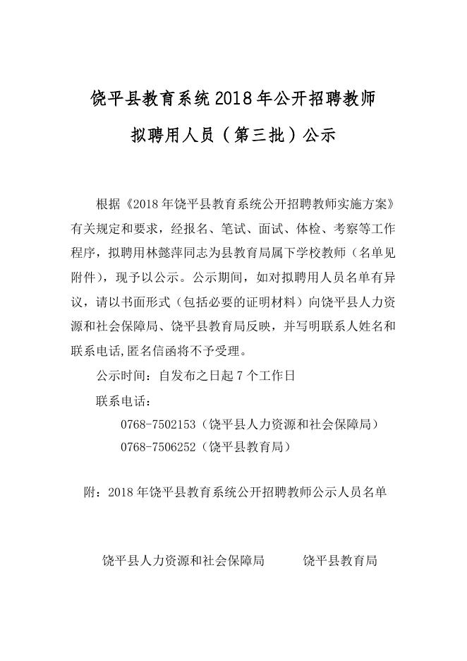 林懿萍饶平县教育系统2018年公开招聘教师拟聘用人员公示.doc