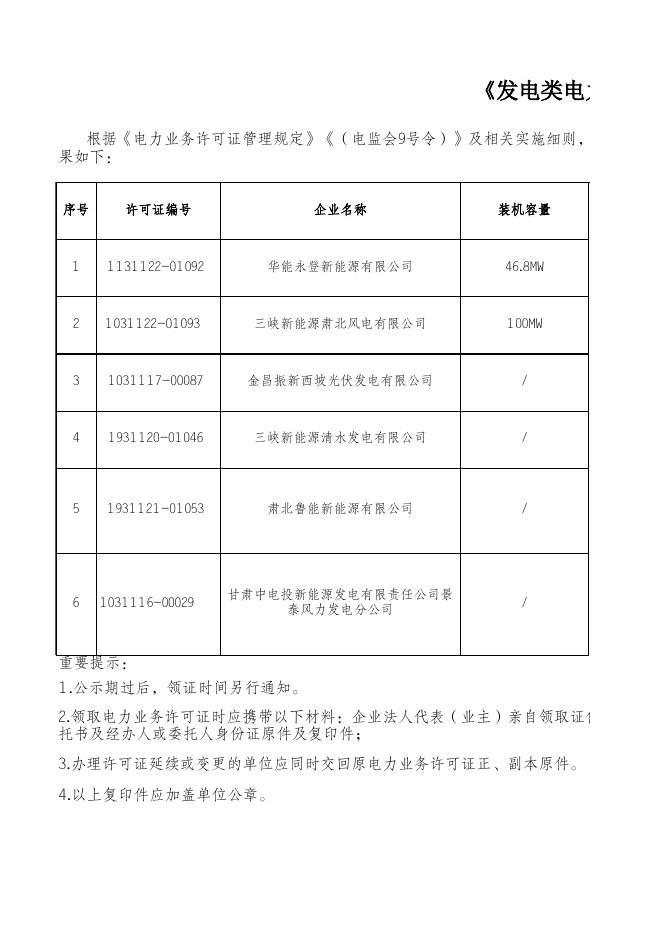 《发电类电力业务许可证》行政许可公示(2022年第9号)_国家能源局-甘肃监管办公室.xls