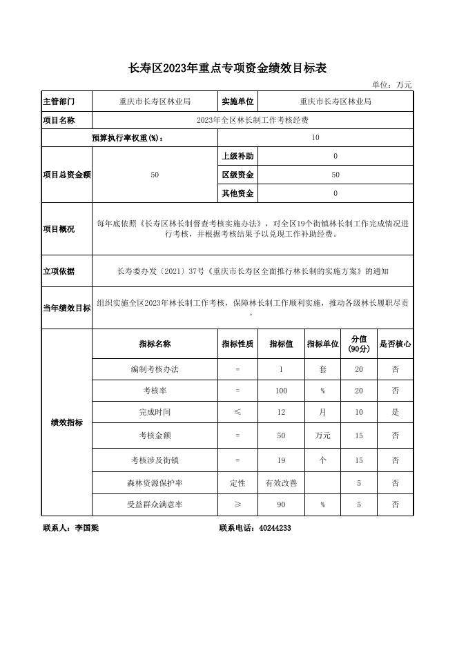 重庆市长寿区林业局项目绩效目标公开表.xlsx