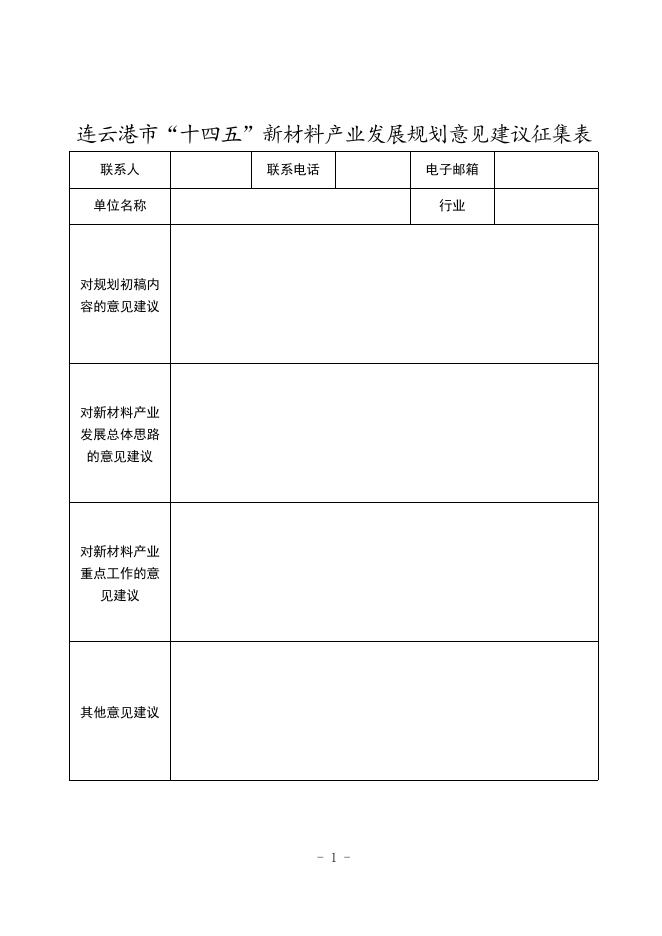 4.连云港市“十四五”新材料产业发展规划意见建议征集表.docx