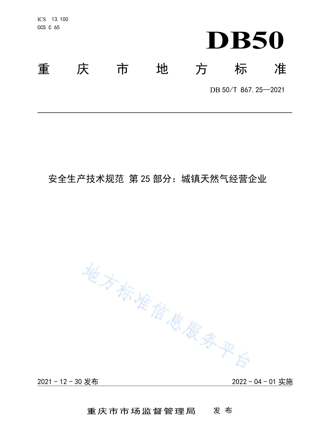 安全生产技术规范 第25部分:城镇天然气经营企业