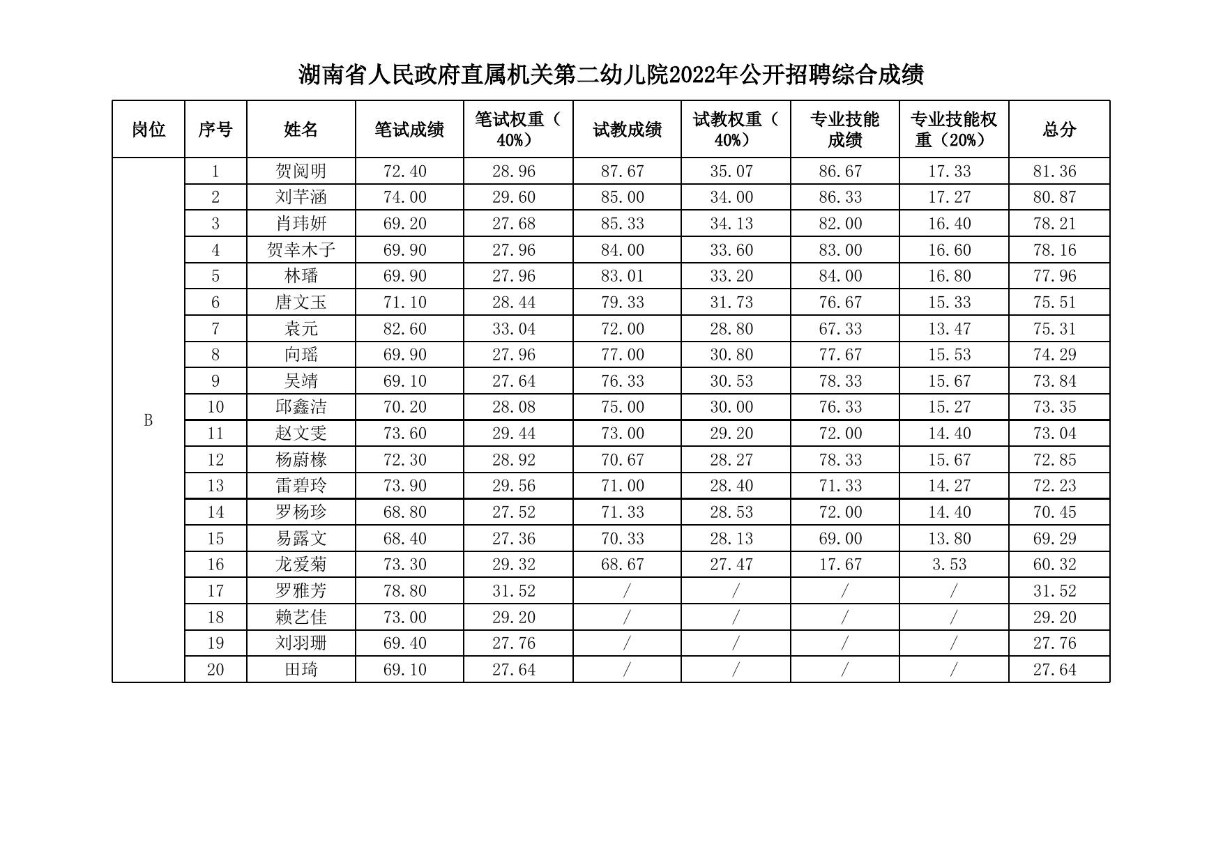 附件:湖南省人民政府直属机关第二幼儿院2022年公开招聘综合成绩.xlsx
