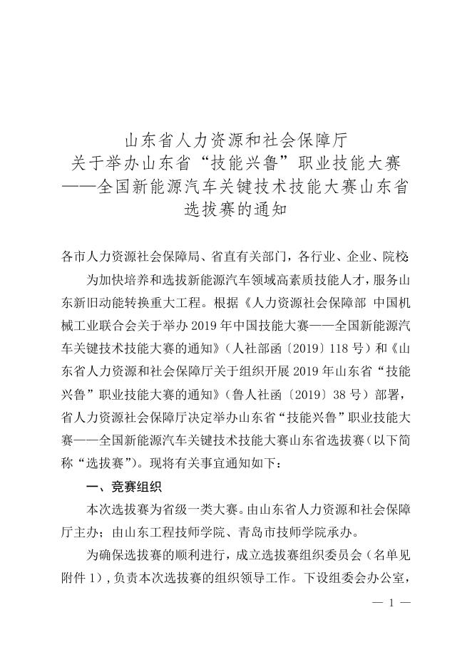 关于举办山东省“技能兴鲁”职业技能大赛——全国新能源汽车关键技术技能大赛山东省选拔赛的通知.doc