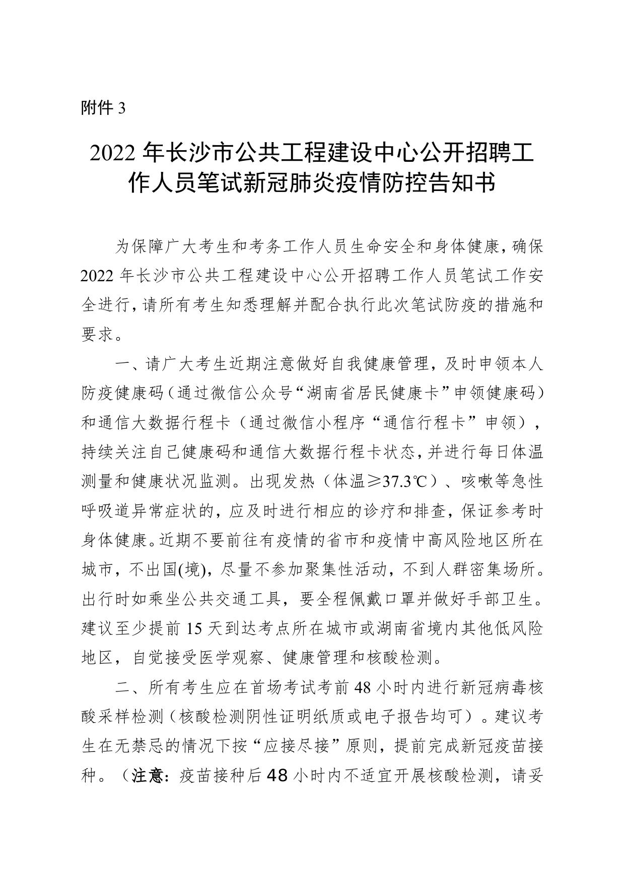 附件3:2022年长沙市公共工程建设中心公开招聘工作人员笔试新冠肺炎疫情防控告知书.docx