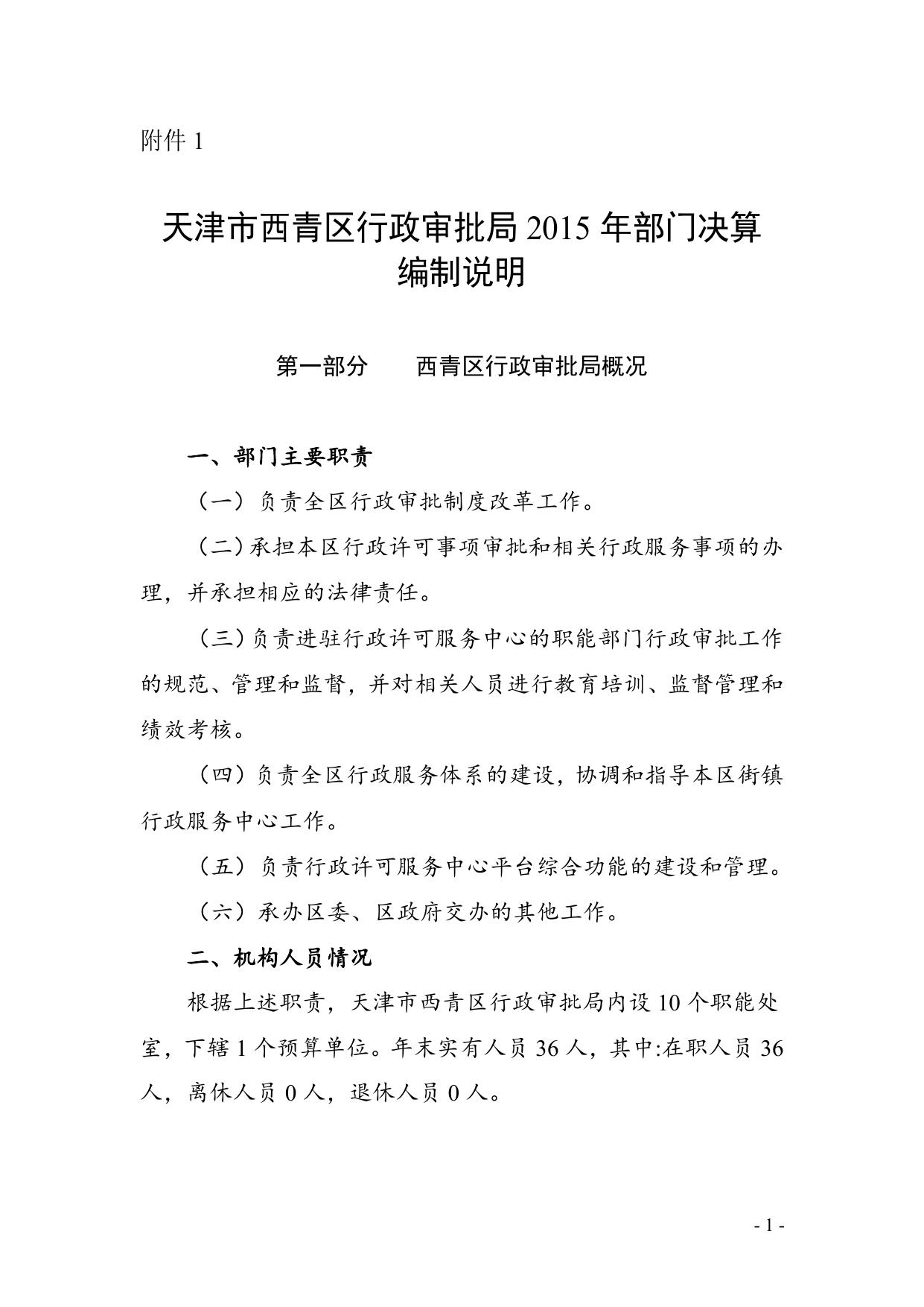 附件1:天津市西青区行政审批局2015年部门决算编制说明.doc