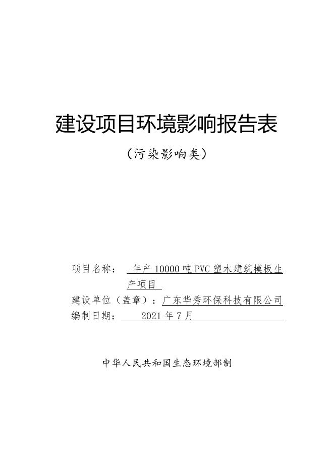 年产10000吨PVC塑木建筑模板生产项目环境影响报告表.pdf