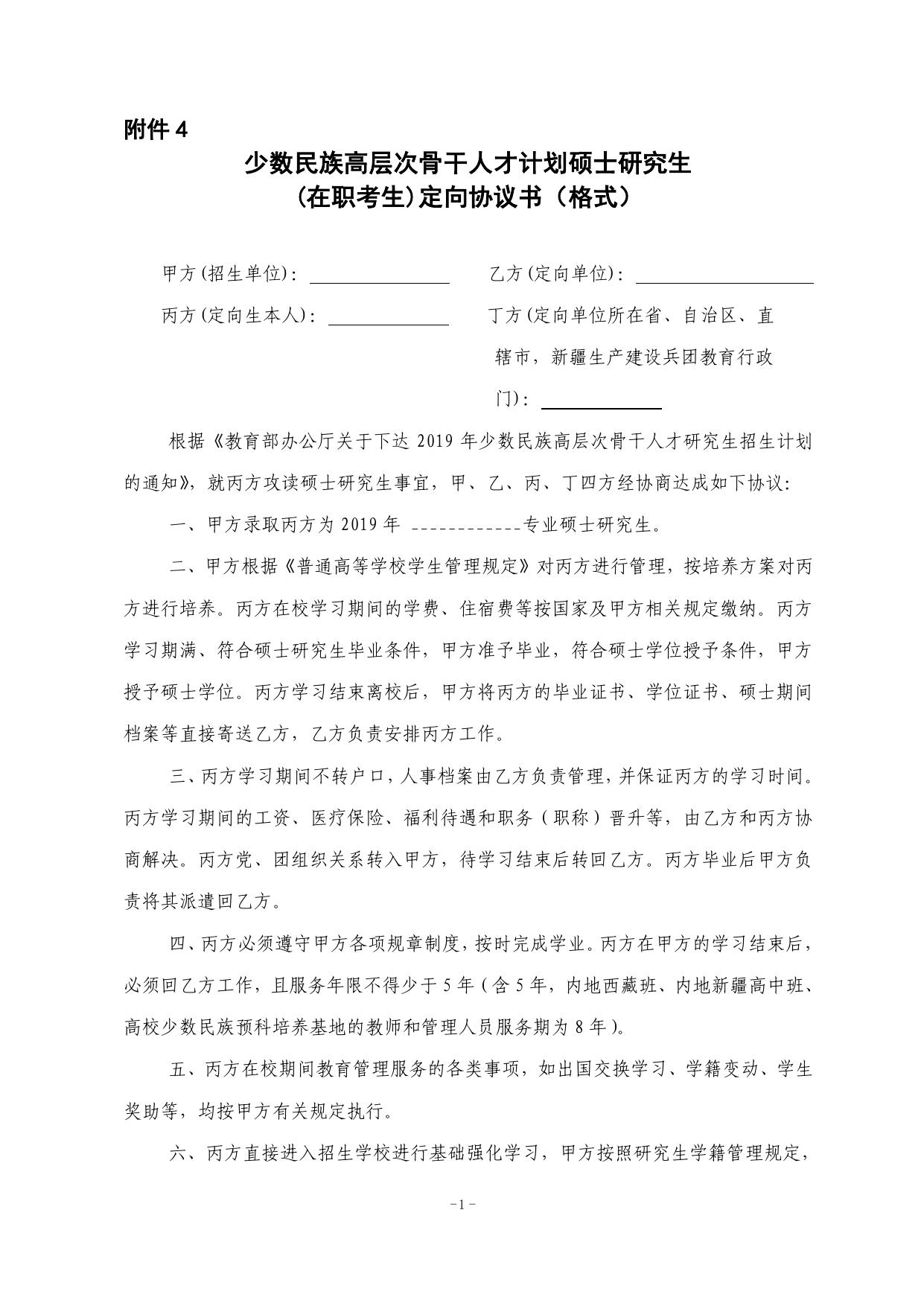 (必须双面打印)少数民族高层次骨干人才计划硕士研究生(在职考生)定向协议书(格式).pdf