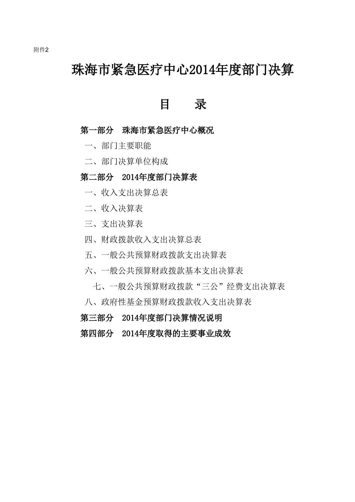 珠海市紧急医疗救援中心2014年度部门决算和“三公”经费决算信息公开表.xls