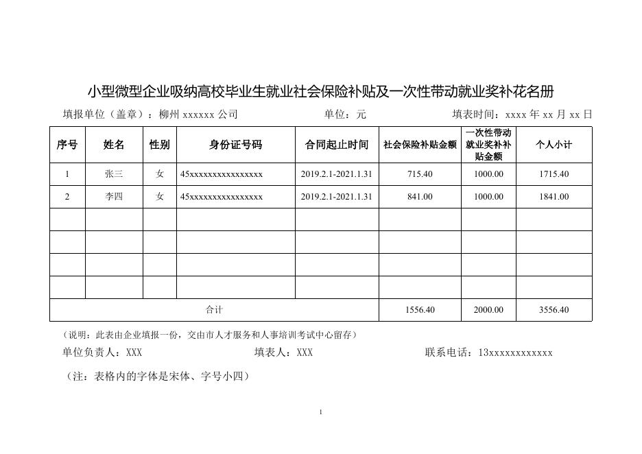 附件3:小型微型企业吸纳高校毕业生就业社会保险补贴花名册-样表.doc