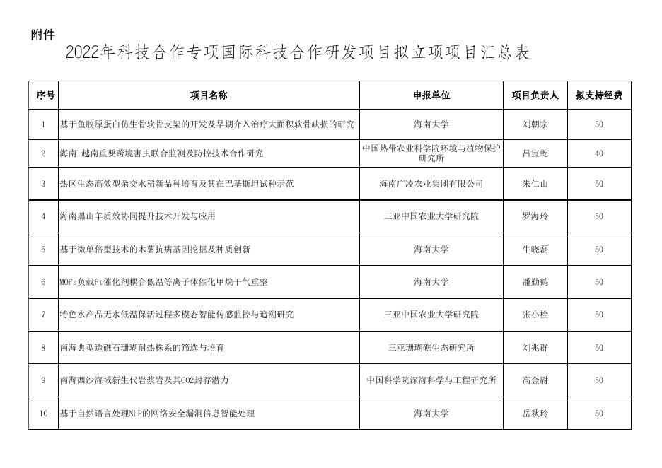 附件:2022年科技合作专项国际科技合作研发项目拟立项项目汇总表.xls