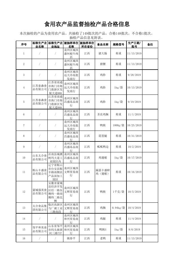 食用农产品监督抽检产品合格信息.xlsx