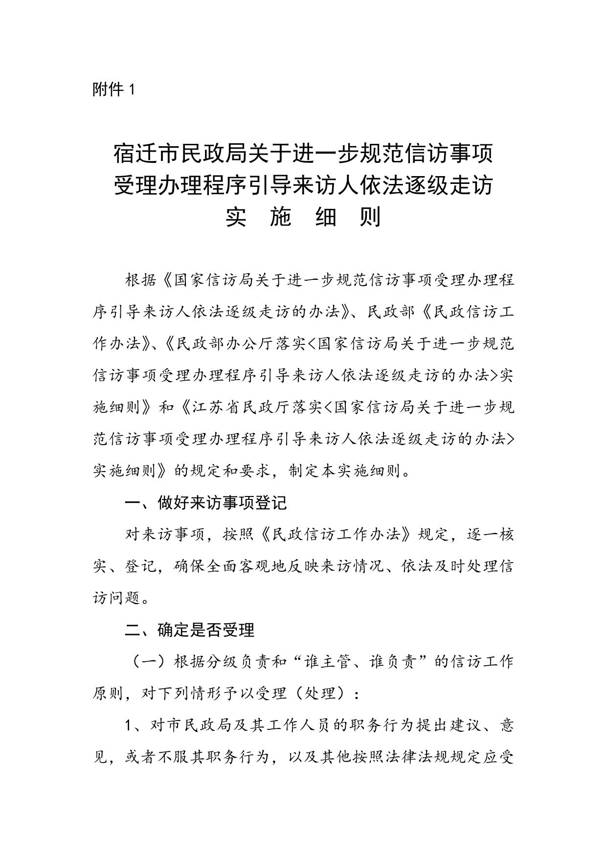 宿迁市民政局关于进一步规范信访事项受理办理程序引导来访人依法逐级走访实 施 细则附件.doc