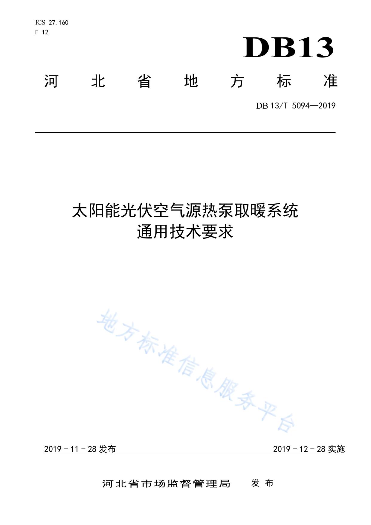 太阳能光伏空气源热泵取暖系统通用技术要求