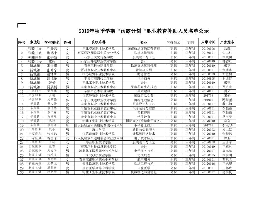 关于2019年秋季学期“雨露计划”职业教育补助人员名单的公示-辛集市人民政府.xls
