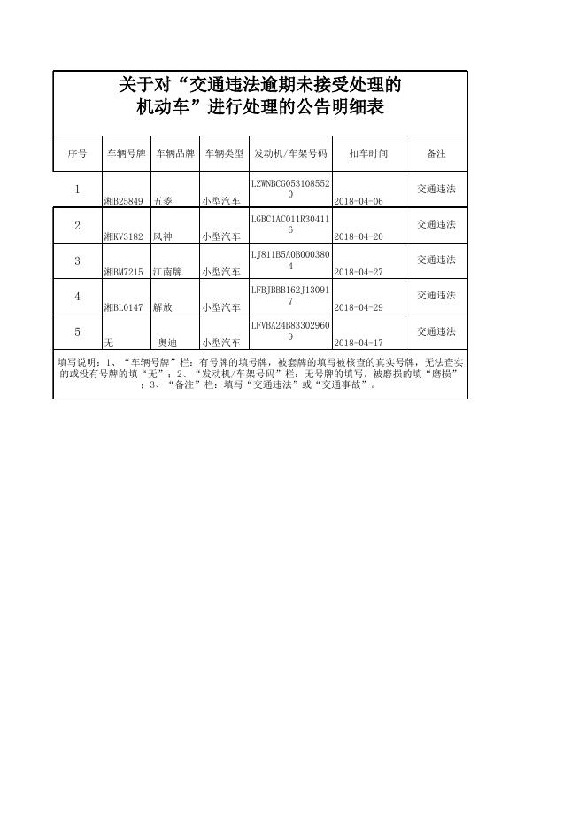 株洲市公安交警网-公告公示-芦淞大队2018年4月关于对“交通违法未接受处理的机动车”进行处理的公告.xls