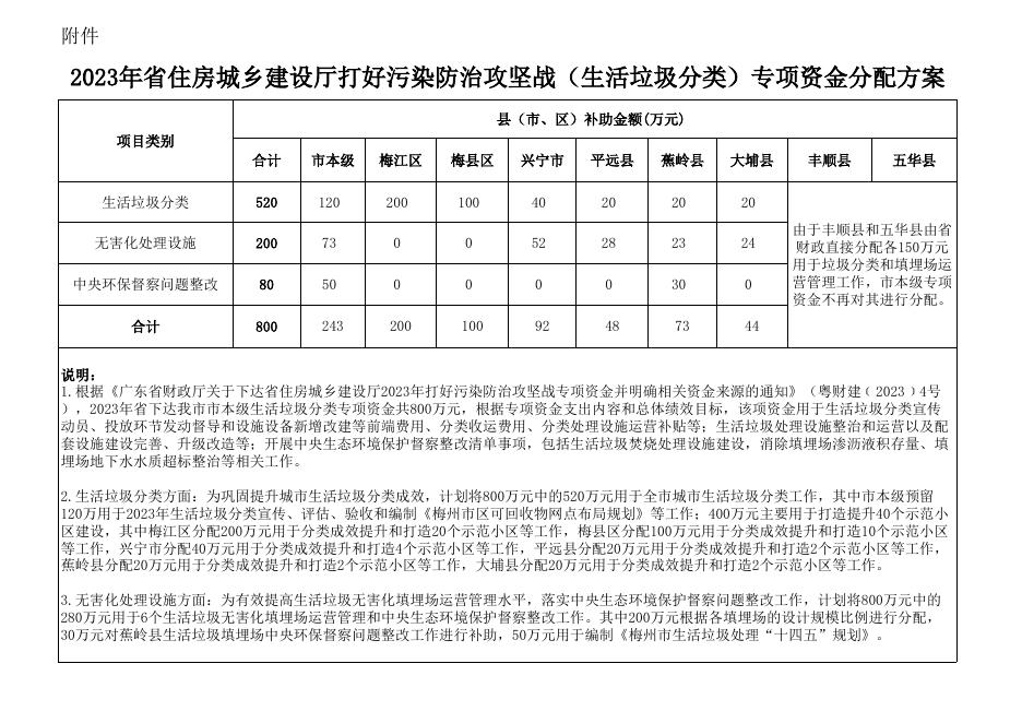 附件:2023年省住房城乡建设厅打好污染防治攻坚战(生活垃圾分类)专项资金分配方案.xlsx