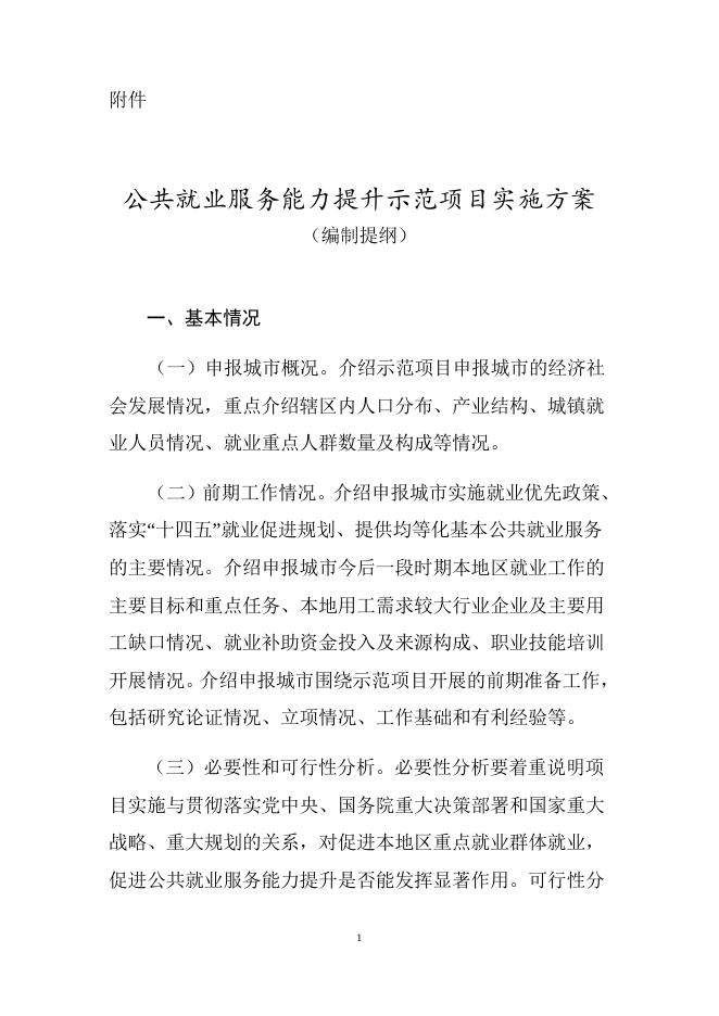 公共就业服务能力提升示范项目实施方案(编制提纲).docx