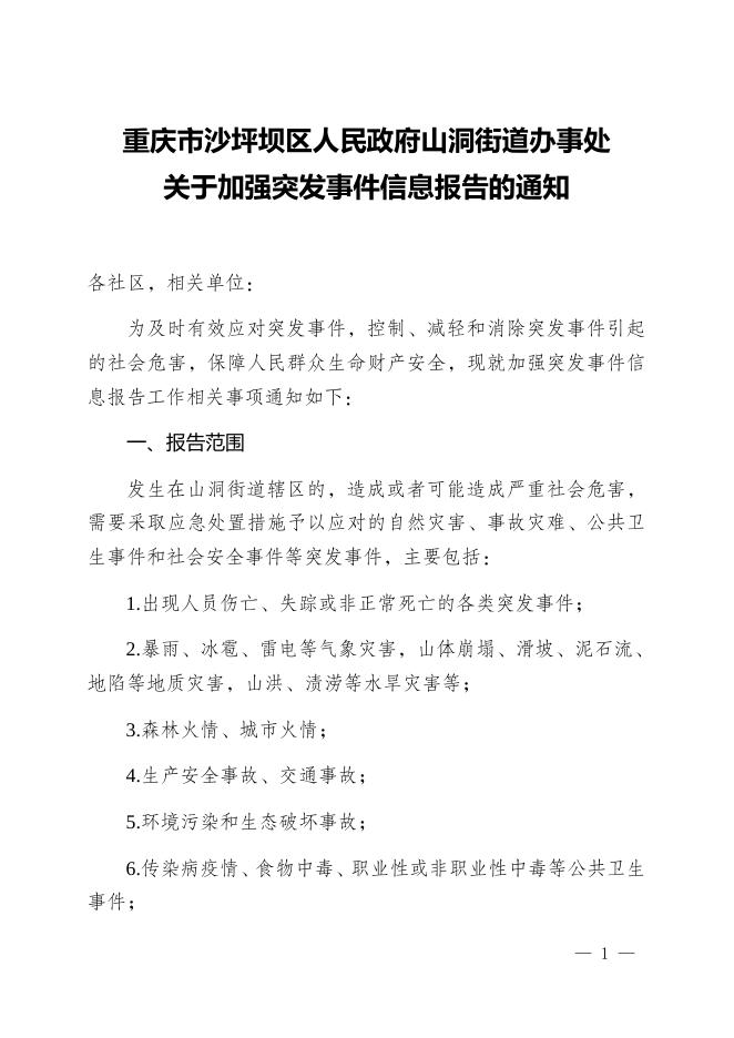重庆市沙坪坝区人民政府山洞街道办事处关于加强突发事件信息报告的通知.docx