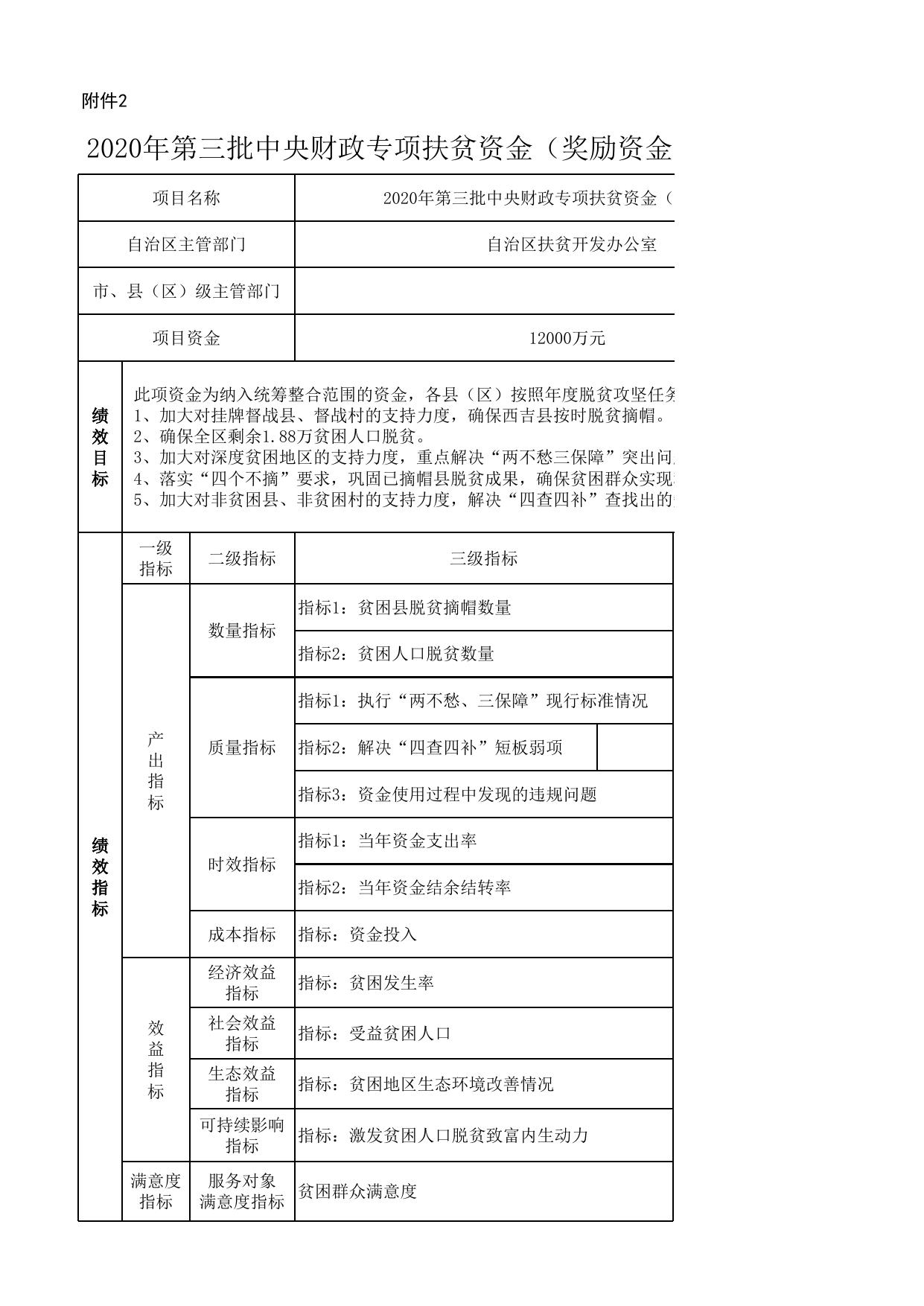 2,2020年第三批中央财政专项扶贫资金(奖励资金)绩效目标表.xlsx