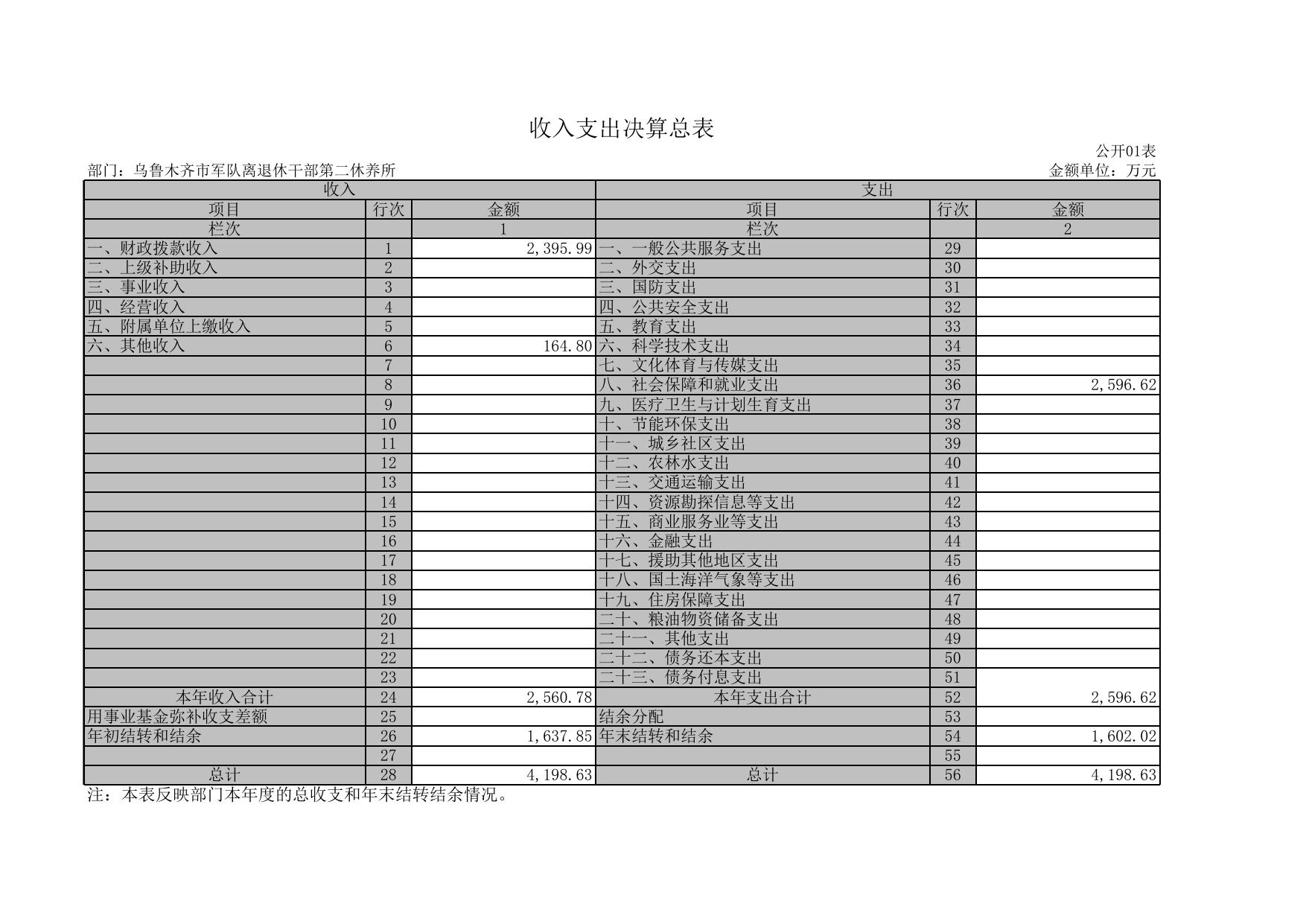2018年度乌鲁木齐市军队离退休干部第二休养所部门决算报表.xls