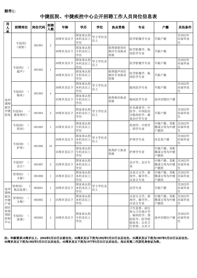 中捷医院、中捷疾控中心公开招聘工作人员岗位信息表.xlsx