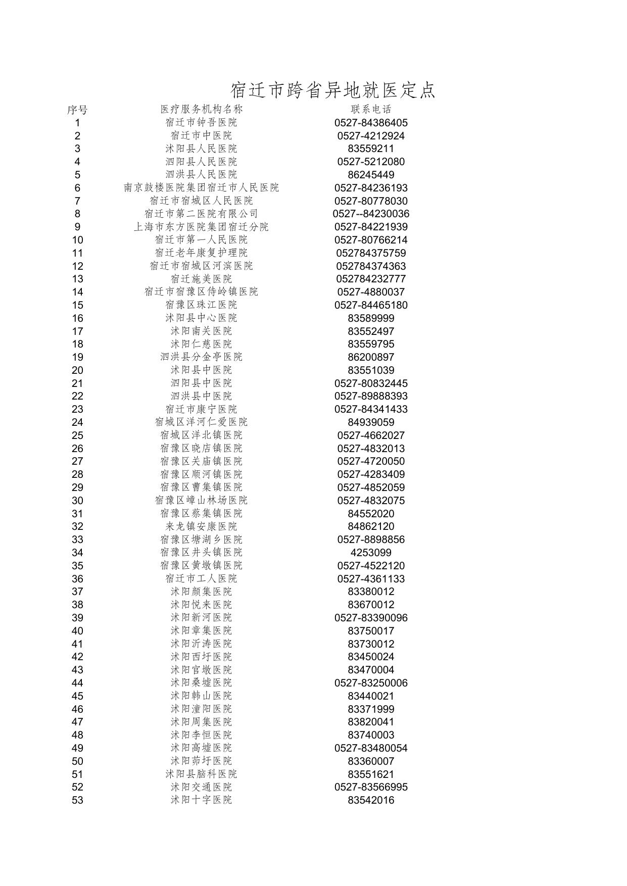 宿迁市跨省异地就医定点医疗机构名单.xls
