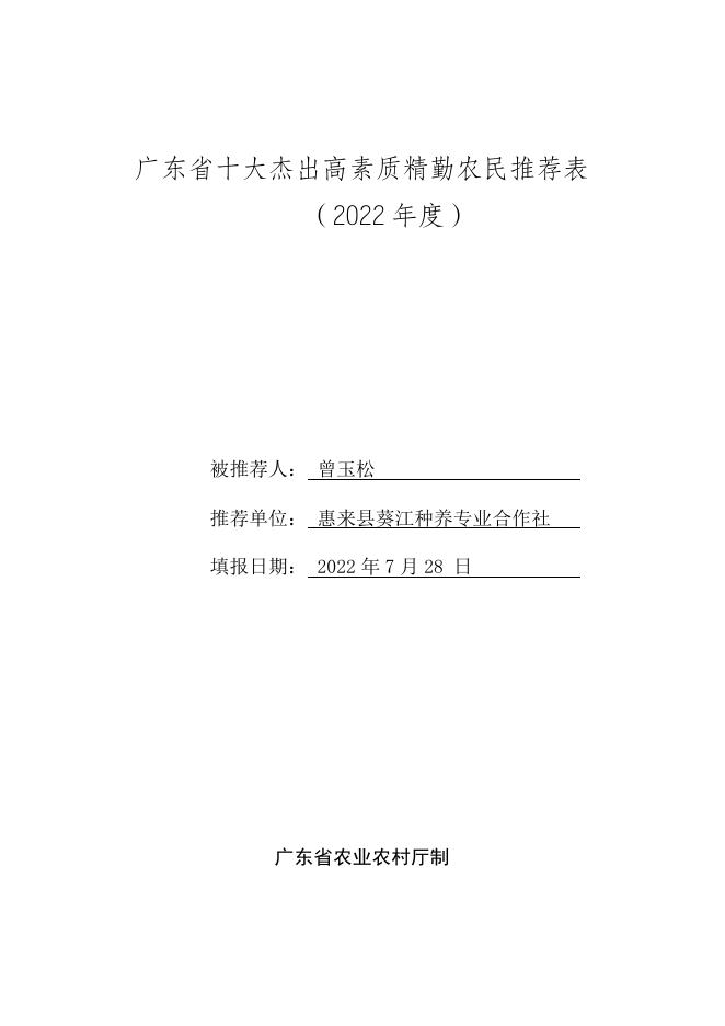 附件:2022年广东省十大杰出高素质精勤农民候选人员基本资料.docx