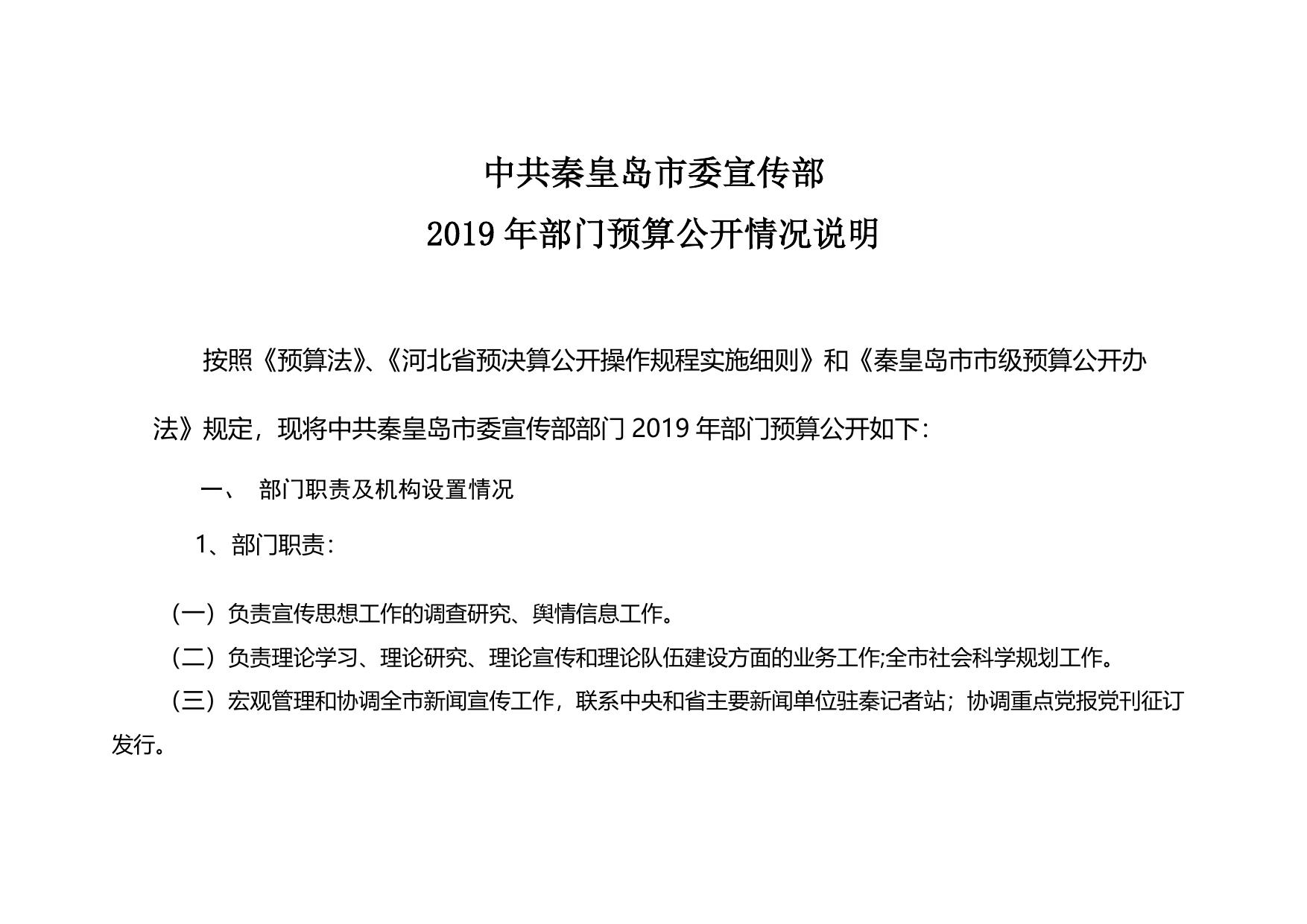 3. 中共秦皇岛市委宣传部2019年预算公开说明.doc