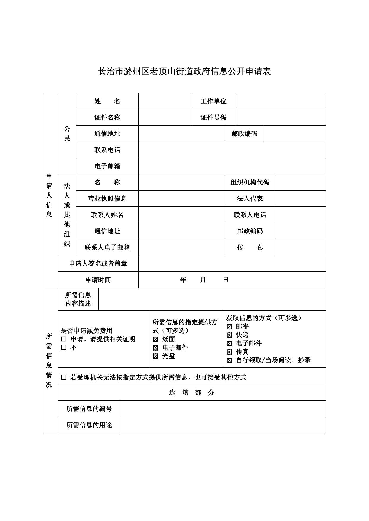 附件:长治市潞州区老顶山街道政府信息公开申请表.doc