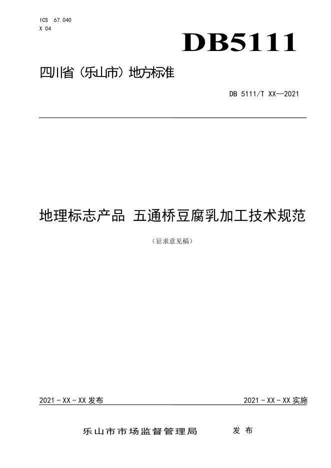 附件1 地理标志产品 五通桥腐乳生产加工技术规范征求意见稿.doc