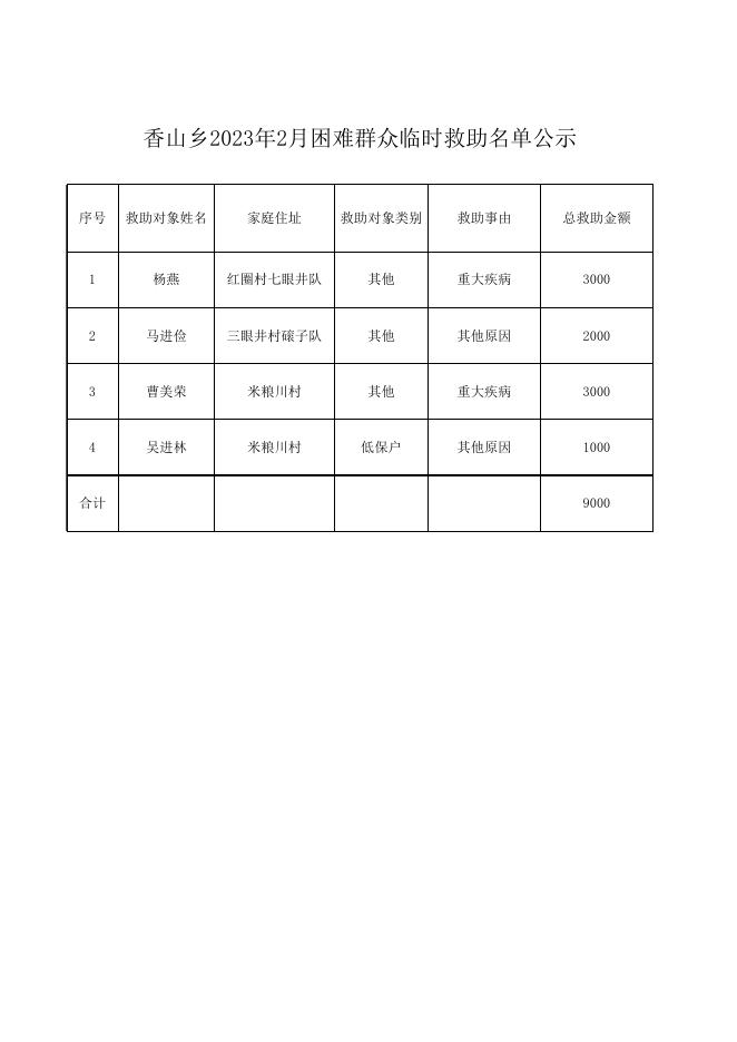 香山乡2023年2月困难群众临时救助名单公示.xlsx