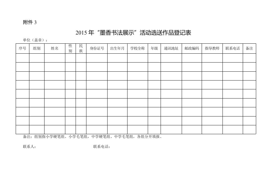 2015年“墨香书法展示”活动选送作品登记表.doc
