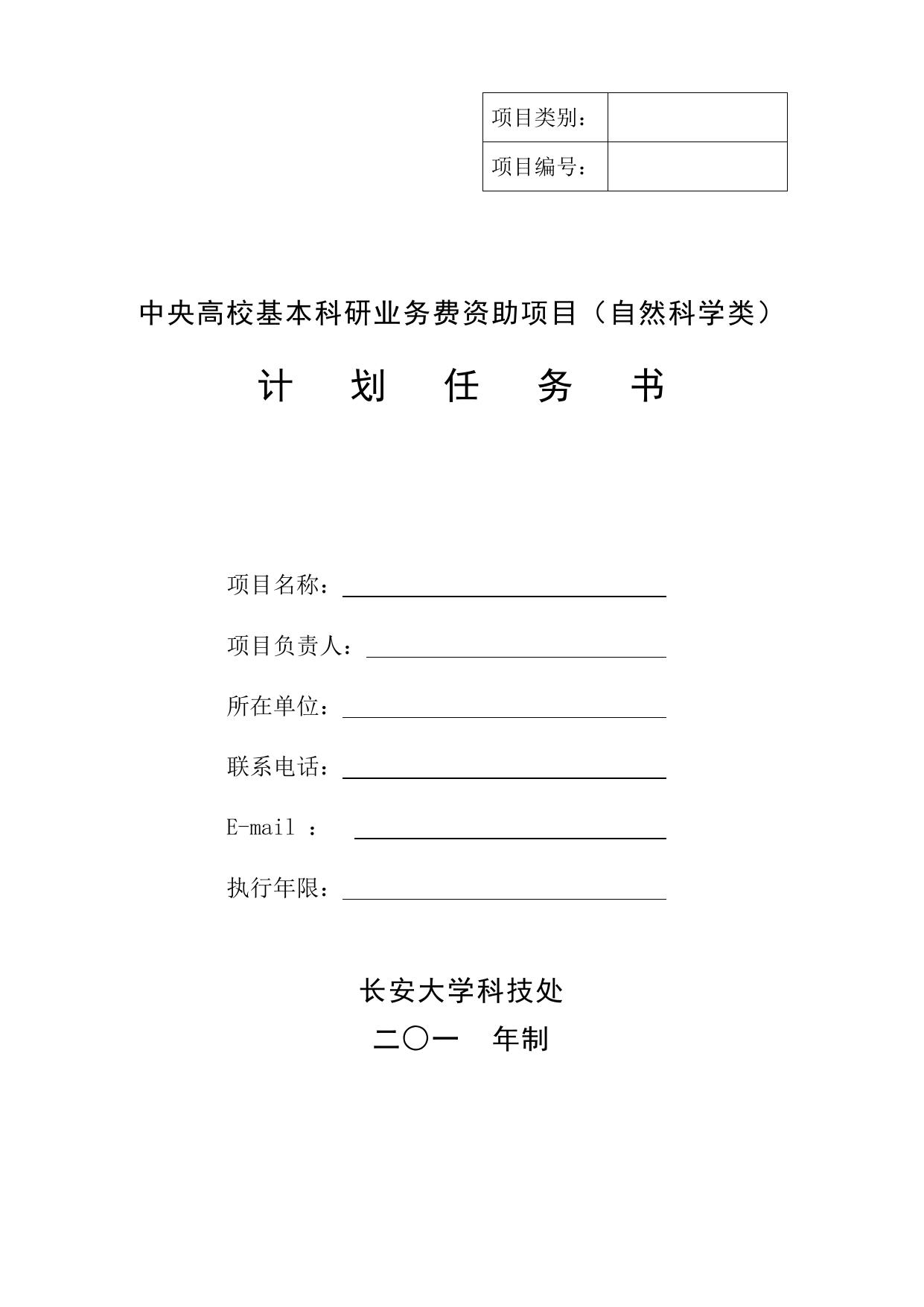 长安大学公路学院附件1 2013-2014基本科研业务资助项目(自然科学类)计划任务书格式.doc