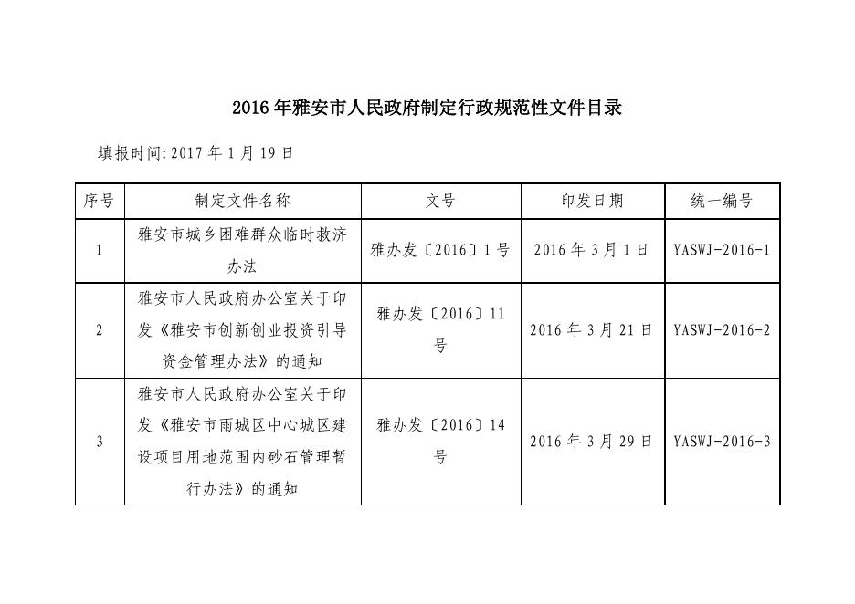 2016年雅安市人民政府制定行政规范性文件目录.pdf