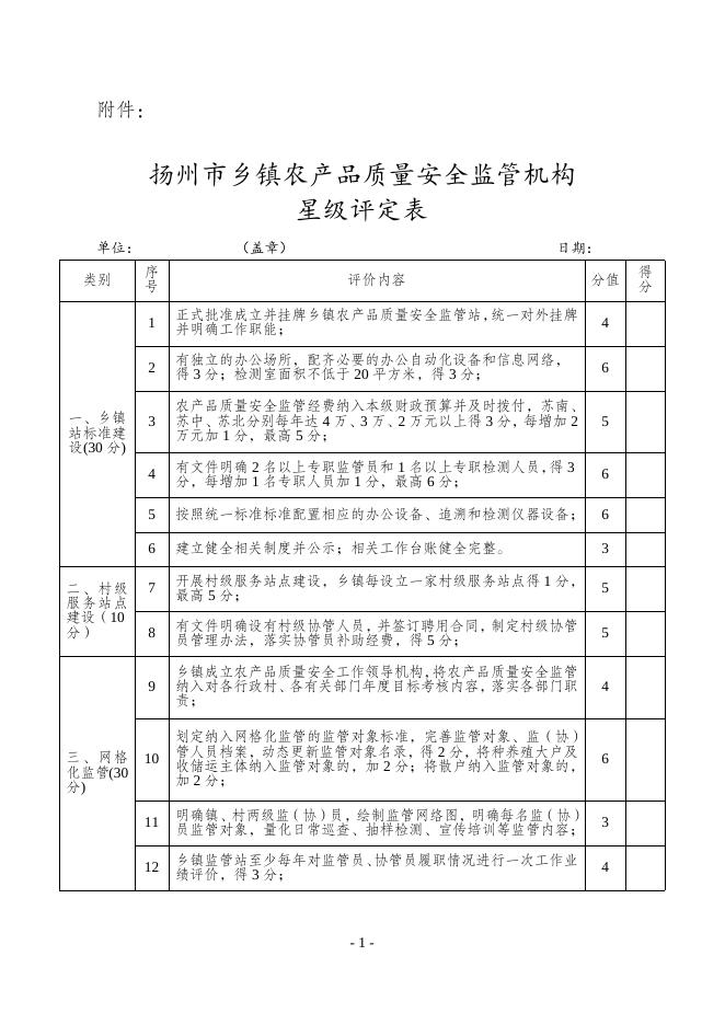 扬州市乡镇农产品质量安全监管机构星级评定表.docx