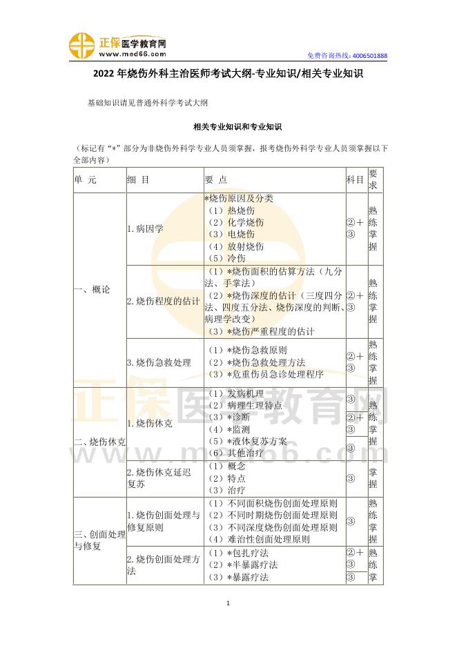 2022年烧伤外科主治医师考试大纲-专业知识及相关专业知识.pdf