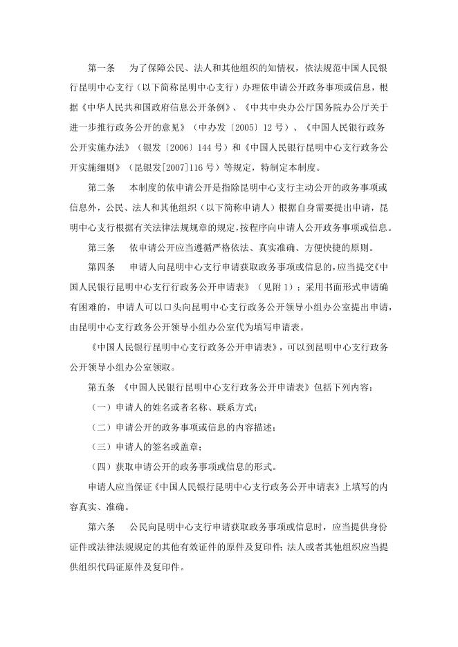 中国人民银行昆明中心支行政务依申请公开制度(试行).docx