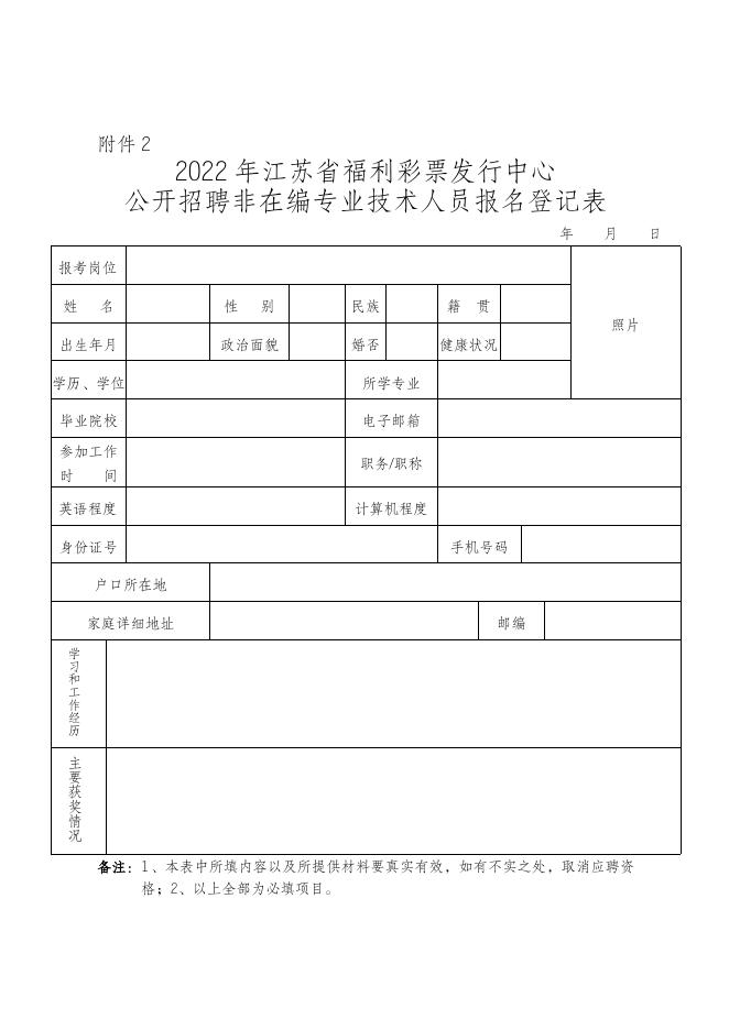 2. 2022年江苏省福利彩票发行中心公开招聘非在编专业技术人员报名登记表.docx