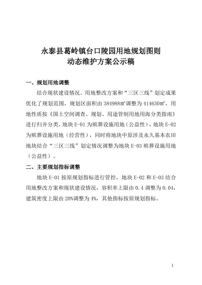永泰县葛岭镇台口陵园用地规划图则动态维护方案公示稿.doc
