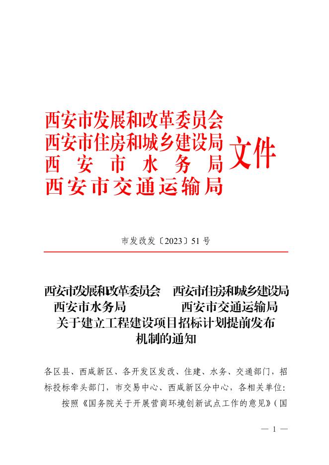 西安市发展和改革委员会西安市住房和城乡建设局西安市水务局西安市交通运输局 关于建立工程建设项目招标计划提前发布机制的通知.pdf