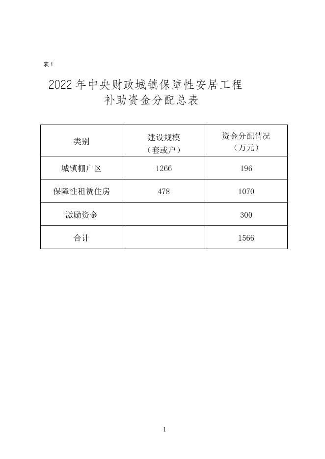 2022年中央财政城镇保障性安居工程补助资金分配表.doc