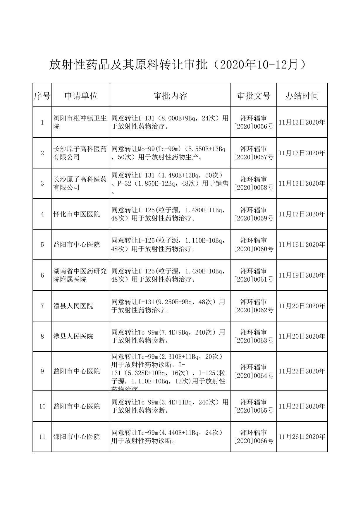 放射性药品及其原料转让审批(2020年10-12月).xlsx