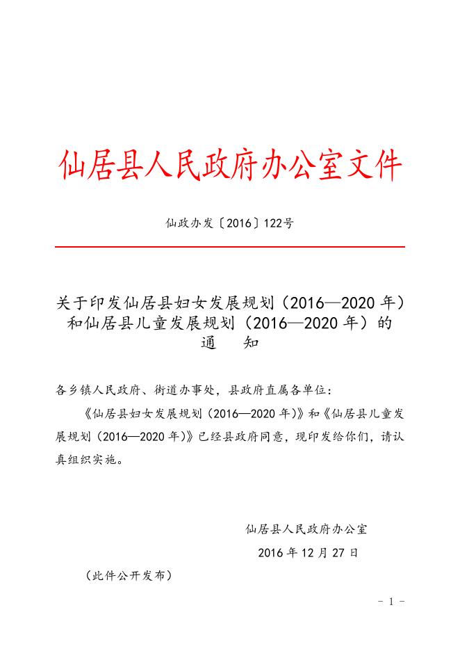 仙居县儿童发展规划(2016—2020年).doc