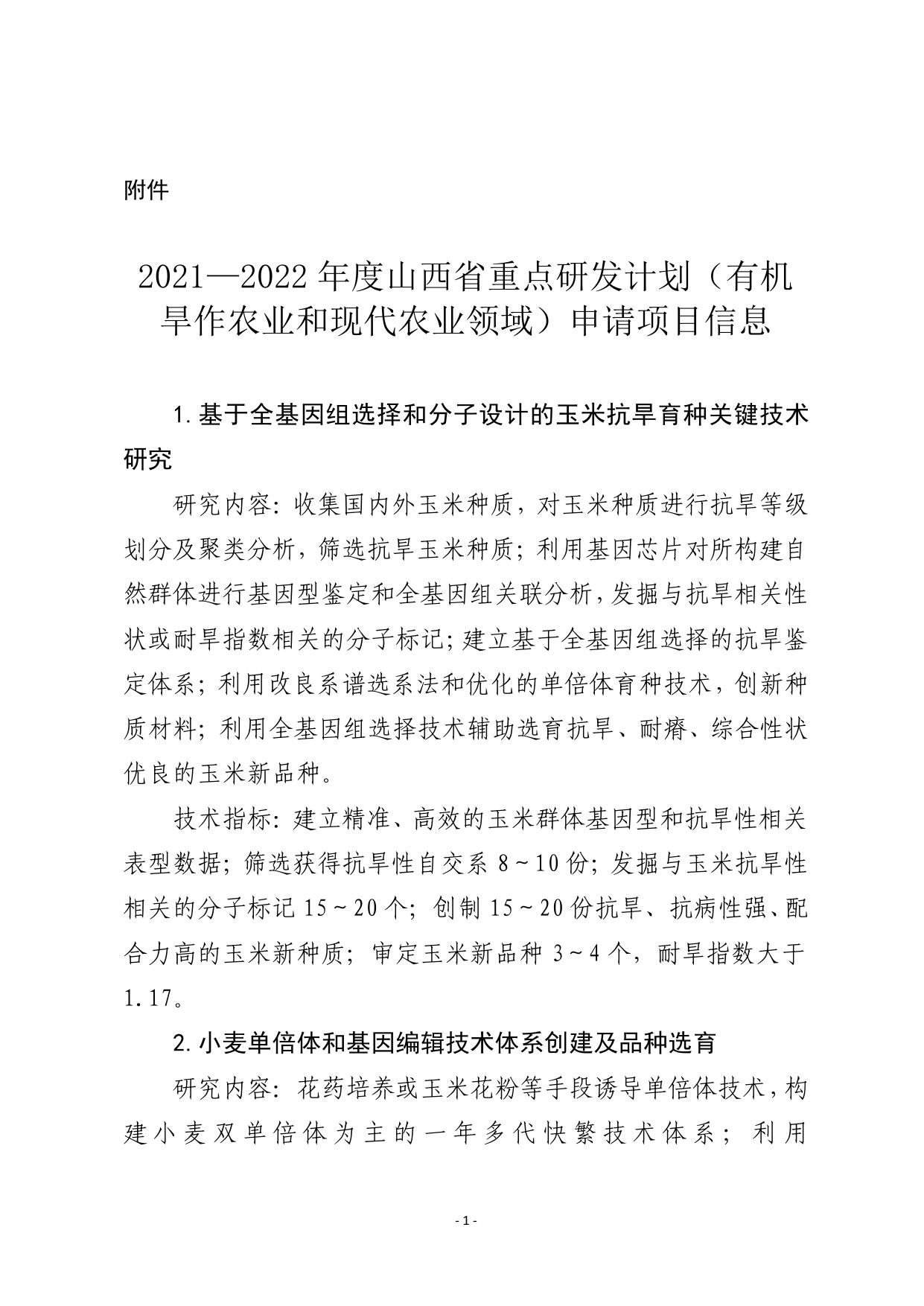 山西农业大学附件2:2021—2022年度山西省重点研发计划(有机旱作农业和现代农业领域)申请项目信息.pdf